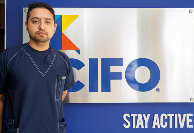 - ● CIFO team member, treating patients using physical therapy.